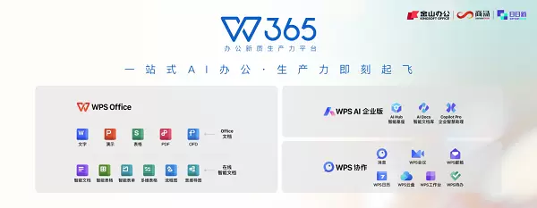 基于「WPS Office+WPS协作+WPS AI」的模式,用户只需要WPS 365一个产品就能高效完成所有工作,免去了办公场景下的繁琐切换。WPS 365打通了文档、AI、协作三大能力,让各组件间无缝切换,用户使用一个工具就能调用各类主流大模型,一个界面就能边写边沟通边开会,一个产品就能高效完成所有工作。此次WPS 365的全新升级,全面覆盖了一个组织日常办公的基本需求,从文档创作到即时通讯(IM)、会议、邮件,再到AI应用,标志着一个文档处理套件正式升级为一站式AI办公,让企业生产力即刻起飞。