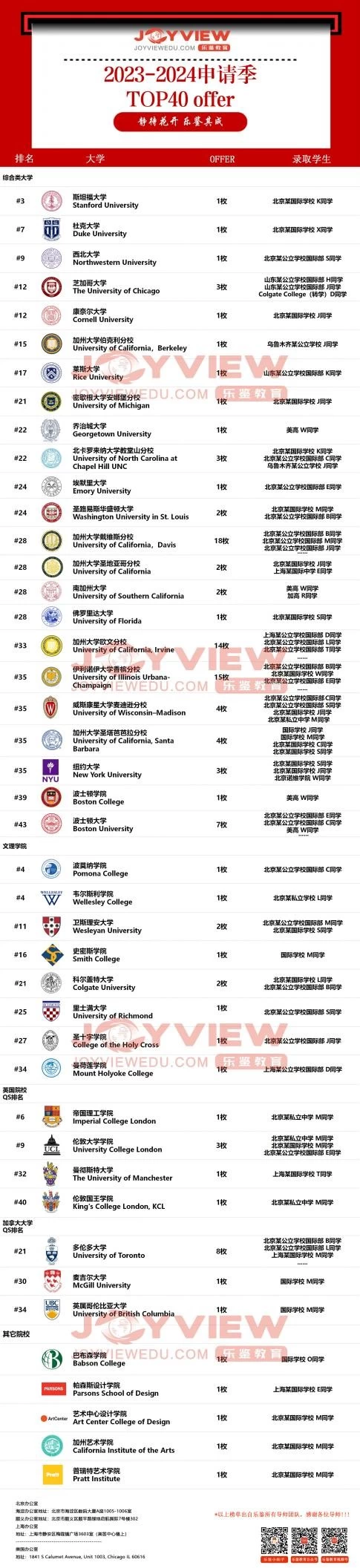 在刚刚结束的2023-2024申请季,乐鉴帮助了很多同学拿下理想学校录取,除斯坦福、西北、伯克利、芝加哥大学、波莫纳之外,不乏还有杜克、康奈尔、莱斯大学、南加大、纽约大学Stern商学院、乔治城、韦尔斯利、卫斯理安、帝国理工、伦敦大学学院、多伦多大学、悉尼大学、早稻田大学等世界名校名校录取。