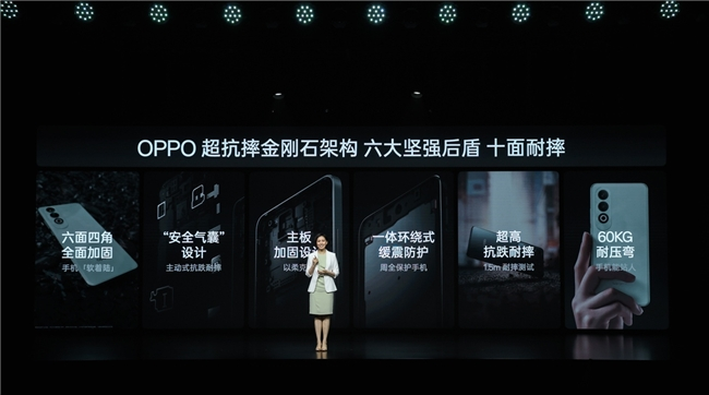 在轻薄机身基础上,OPPO K12在机身结构设计上也进行了全面升级,采用独家自研的「超抗摔金刚石架构」,针对手机屏幕、背盖、四角、四边,OPPO K12都做了加固,实现十面耐摔。此外在手机摄像头、芯片等关键部位,OPPO K12也采取了支撑保护,尤其是在主板上盖和下盖之间拥有支撑骨位,可以让手机更耐摔更好的保护主板。除了耐摔,OPPO K12还通过了60kg极限弯折测试,强度相比于行业常规的40kg测重提升 50%,能够更好地应对坐压等情况。OPPO K12凭借严苛的极限测试标准,打造出了旗舰品质,以满分成绩荣获「瑞士 SGS 金标五星整机抗跌耐摔认证」。