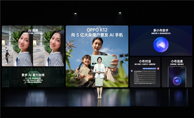 AI体验上,OPPO K12拥有诸多旗舰级AI 功能:AI 消除,可以智能消除照片中的路人,并利用AI 大模型的能力智能分析周围的环境,对消除后的区域进行细节、纹理的真实填补;全新小布AI助手,可以完成旅游行程规划、英语陪练、模拟面试等,为工作生活带来智慧贴心的帮助。