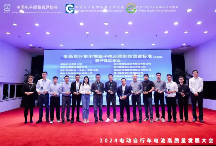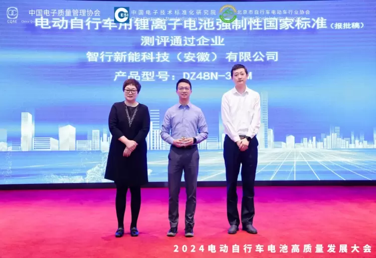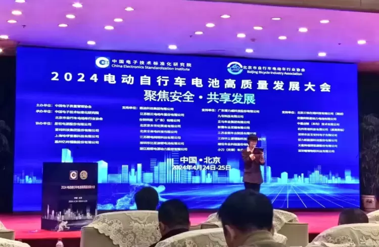 2024年4月24日,智租换电数字工厂智行新能科技(安徽)有限公司受邀参加“聚焦安全 共享发展”——2024电动自行车电池高质量发展大会。本次大会在北京举办,由中国电子质量管理协会主办,由中国电子技术标准化研究院(工信部电子标准院)、北京市自行车电动车行业协会承办。