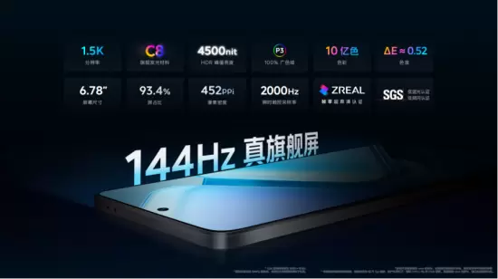 iQOOZ9Turbo与iQOOZ9采用了144Hz超高刷新率的华星C8旗舰屏,并通过了SGS低蓝光及低频闪双重认证。局部峰值亮度高达4500nit,能够适应多种环境。144Hz超高刷新率以及1.5K分辨率在视觉上更加流畅,并带来更快的响应速度;iQOOZ9x采用LCD屏幕,拥有最高120Hz的七挡变速高刷,全屏最高亮度可达1000nit。