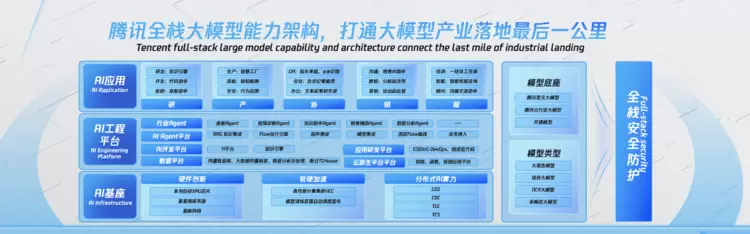 腾讯面向汽车行业提供了从模型、算力、AI工程平台到AI应用的全栈大模型能力底座,助力打通大模型落地应用的“最后一公里”。