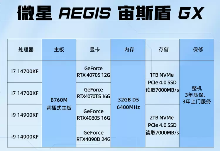 搭载微星B760M PROJECT ZERO背插主板,配备第十四代酷睿处理器、40系列显卡、32G DDR5 6400高频高速内存、M.2疾速固态,宙斯盾GX主机在性能上达到了行业领先水平。