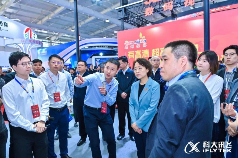 24日,中央宣传部副部长,国家广播电视总局局长、党组书记曹淑敏来到展览会现场参观。在科大讯飞展区,她听取了首个基于全国产算力的大模型星火V3.5的最新进展,并观看了星火语音助手、讯飞康养、讯飞同传等大模型创新应用的产品演示。