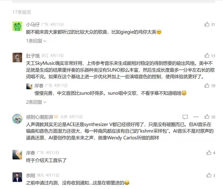 有此感受的并非我一个。自4月17日昆仑万维重磅宣布「天工3.0」基座大模型与「天工SkyMusic」音乐大模型正式公测以来,媒体圈、音乐圈、吃瓜圈等诸多群体亲身体验过AI音乐创作后,震惊+思考人生之余,无不忍不住发出感叹:实在是强!