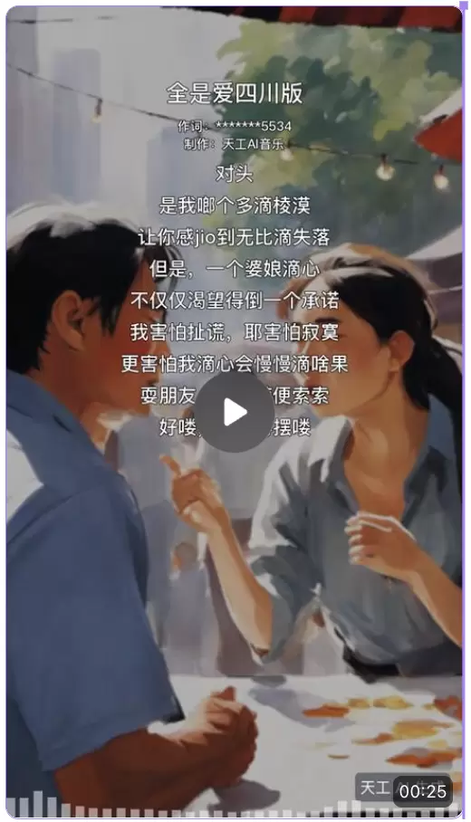 尤其是在中文的人声演唱方面,「天工SkyMusic」更是甩出了同类产品Suno几条街。作为国产自研,「天工SkyMusic」在“土生土长”的buff加持下,一首首以假乱真的中文歌就这样诞生了!不但吐字清晰、发音精准,其音质表现、歌唱水准、情感表达都极为亮眼。不过我们也应该在中文发音不够精准方面原谅Suno,毕竟人家是海外的朋友嘛!