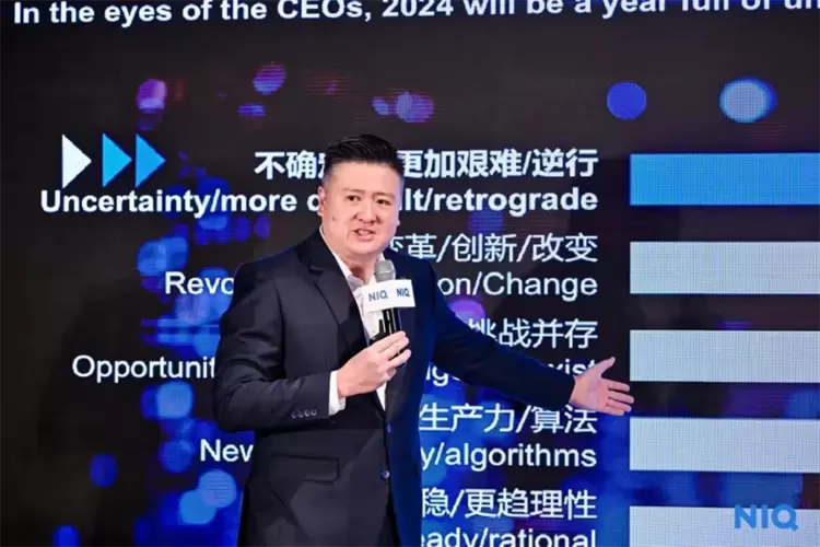 活动伊始,NIQ中国董事总经理柯遵坚(John Patrick Cua)分享了NIQ CEO的调研结果,指出在消费支出减少,消费者日益审慎消费的当下,中国的CEO们对于全球经济、中国经济以及产业前景的预期持审慎态度。相比于疫情刚结束的2023年,CEO们目前更担忧消费市场动力不足,以及来自消费力的下降所带来的供应链影响。与此同时,CEO们也意识到如AI等新科技可能带来的变革,并计划今年在品牌建设,组织架构及创新方面进行调整,来更好的应对这些挑战。