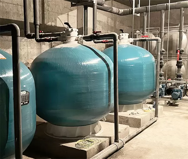 AQUA爱克过滤砂缸耐高温高压、防腐蚀防渗漏,并具有超高过滤精度,可以全面彻底过滤泳池中的杂质,保持水质清澈洁净。同时AQUA爱克过滤砂缸自带反冲洗功能,可轻松清理砂缸内积存的杂质,免去烟台某私立学校游泳池维护费用。