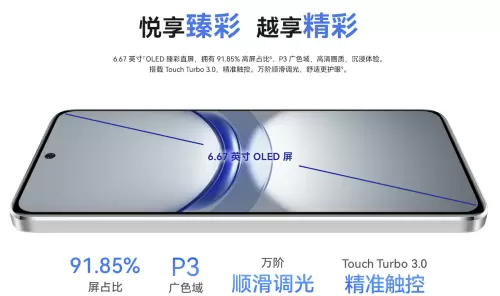 不仅如此,Hi nova 12 SE保持了更加轻薄的机身,厚度仅为7.48mm,整机重量减至185g,手小的女生也能轻松单手握持。Hi nova 12 SE采用无界臻彩全视屏,拥有高分辨率,呈现出流畅的画面和丰富的色彩。中框采用直角边框设计,正面颜值拉满。窄边框带来91.85%的屏占比,带来沉浸式的视觉体验。此外,该机屏幕还搭载了Touch Turbo触控技术,为用户带来更准确、更顺畅的触控操作体验。