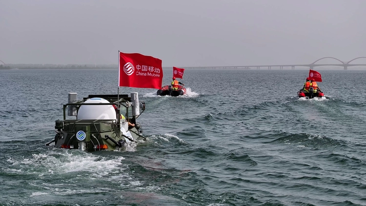 为运送更多抢险物资与人员,湖北移动调派冲锋舟与水陆两栖全地形车参与跨水域保障。河域中,水陆两栖全地形车具备的一键返航、全地形全域灵活通过、水陆两栖、自动巡查、自动跟随、远程遥控等多种功能,在人员搜救、转运中,极大提高了通信抢修效率,保障了人员生命安全。