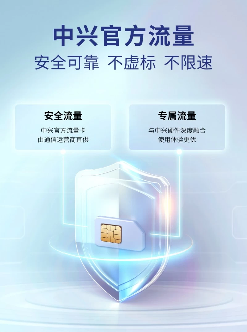 除了覆盖广、高速率、连接设备多、网络稳定,中兴U50S还支持超大流量、超低资费,让用户畅连无忧。设备内置一张中兴官方流量卡,由通信运营商直供,安全可靠、不虚标、不限速。流量套餐清晰透明,无隐形费用,让用户用得放心。月享超大流量,每天24小时连续使用30天,流量都够用。超低资费,1G低至4分钱,看视频、刷抖音、玩游戏流量怎么用都不心疼。