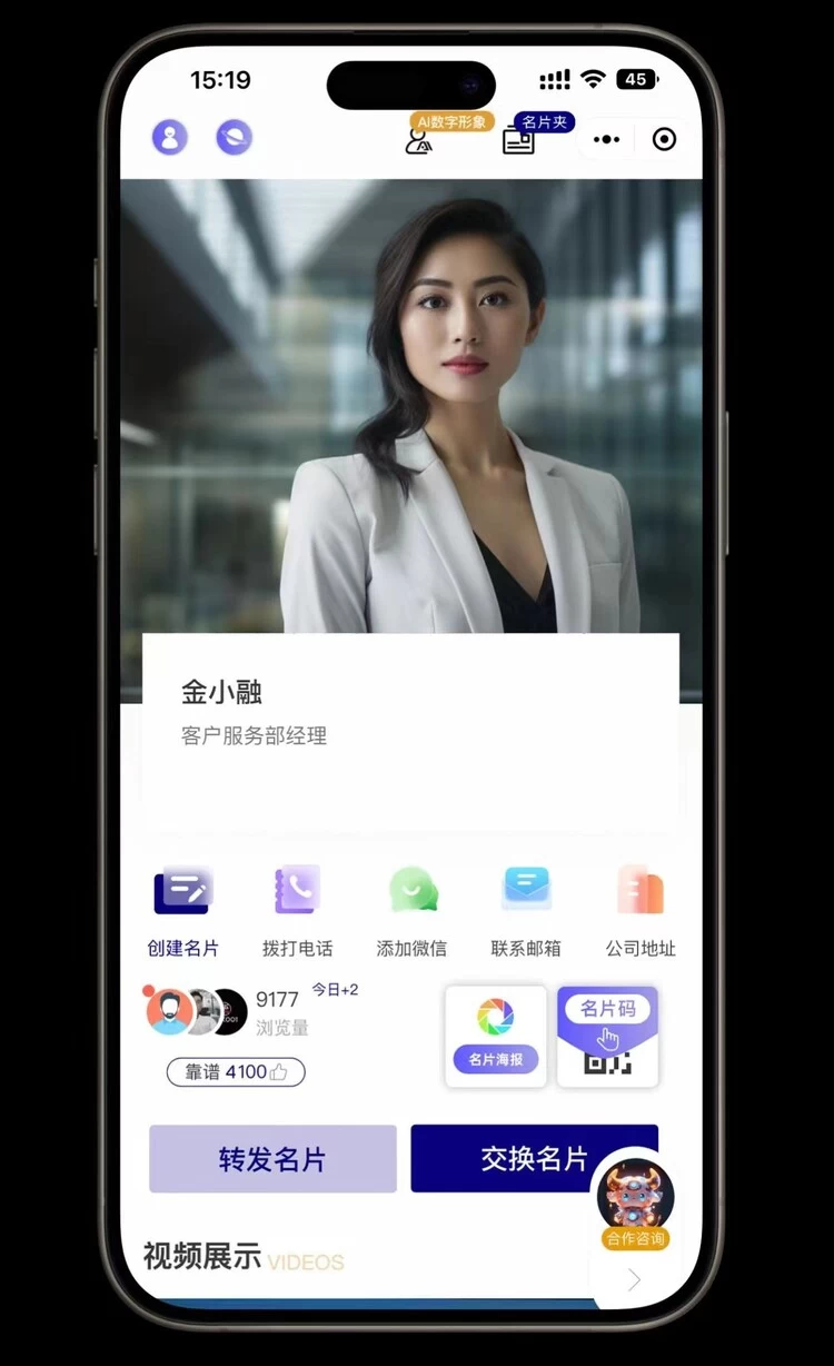 名片利用多种AI技术,用户仅需上传照片,即可快速生成数字人形象,并以AI驱动进行动态展示。接入的AI声音克隆技术还支持用户克隆训练自己的声音。这样的数字化展示和交互体验,能塑造商协会更加个性、现代、专业的品牌形象。