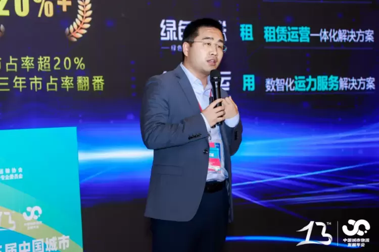 绿色慧联副总经理、车联网研究院院长金彪受邀参加本次会议,并在会上发表了《科技平权推动城配行业升级》的主题演讲,介绍绿色慧联通过科技创新和科技平权,解决新能源商用车推广痛点,推动行业数智化转型,为城配物流行业未来发展带来了新的思考。