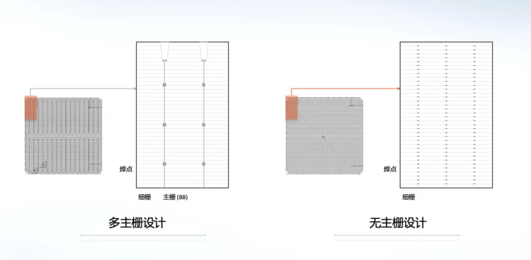 相较于MBB(多主栅)及SMBB(超多主栅)技术,0BB(无主栅)技术在电池端不印刷主栅,可有效提升受光面积;在组件环节使用更细、数量更多的焊带与细栅直接相连,可更好地收集电流,并有效降低隐裂后的发电损失,因此被视为光伏行业终极焊接技术。