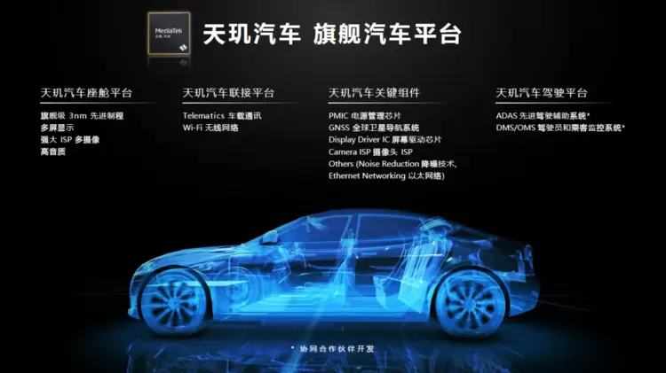 作为汽车产业的老玩家,联发科天玑汽车平台在市场中保持持续增长的势头,其中天玑汽车座舱平台全球市场出货量已超2000万套,天玑汽车联接平台更获得全球头部汽车制造商采用,天玑汽车卫星导航系统和电源管理芯片等关键组件的出货量和市场份额持续增长,天玑汽车驾驶平台的进度也十分顺利。而英伟达是人工智能和计算领域享有盛名的开拓者和领导者,去年5月双方宣布达成合作,这一合作充分发挥了各自汽车产品组合的优势,结合了双方的最佳能力,MediaTek开发集成NVIDIA GPU芯粒(chiplet)的汽车SoC,搭载了NVIDIA AI和图形计算IP,共同为新一代智能汽车提供卓越的解决方案。