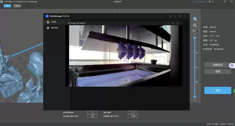 毕竟是第一次体验土星4U这款新品,所以在首次打印时选择了模型难度较低的键帽进行尝试。按照产品说明书的参数设置好,导入需要打印的模型,自动增加支撑并切片后,通过WiFi远程传输到打印机,3D打印的前期工作就全部完成了。