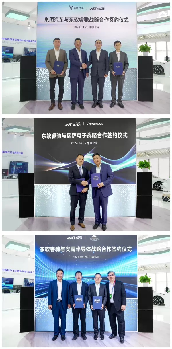 车展期间,岚图汽车与东软睿驰正式签署战略合作协议,聚焦智能化产品和应用,围绕用户需求共同打造极致的智能出行体验。此外,东软睿驰与瑞萨电子、安霸签署了战略合作,持续构建开放共赢、协同创新的智能汽车新生态。