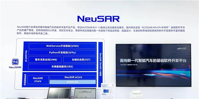 车展期间,东软睿驰亮相展出全面增强应用创新的汽车软件开发平台NeuSAR,提供兼容AUTOSAR标准的基础软件、跨域中间件和开发工具,保证安全性和稳定性的同时又具备开放性,全面降低整车研发成本和应用开发门槛,大幅提升软件迭代速度与创新开发效率。