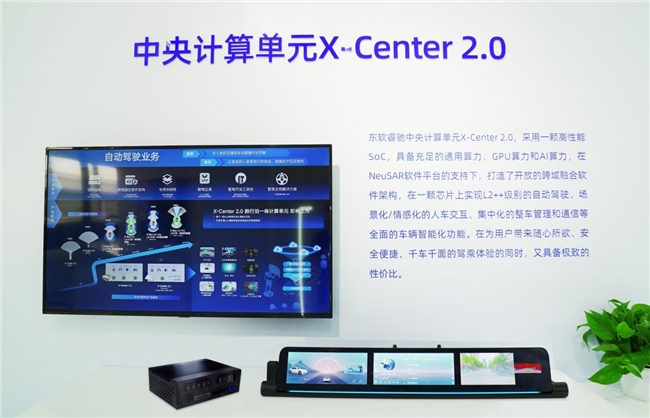东软睿驰全新中央计算单元X-Center 2.0采用一颗高性能SoC,具备充足的通用算力、GPU算力和AI算力,在NeuSAR软件平台的支持下,打造了开放的跨域融合软件架构,在一颗芯片上实现L2+级别的自动驾驶、场景化/情感化的人车交互、集中化的整车管理和通信等全面的车辆智能化功能。在为用户带来随心所欲、安全便捷、千车千面的驾乘体验的同时,又具备极致的性价比。