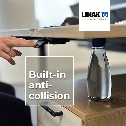 DPI 首次将防撞传感器技术融进升降桌手控器中,通过检测桌面最轻微的倾斜,来判断桌子在升降过程中是否有碰撞的风险,以减少碰撞的可能性及潜在损害。集成的形式使升降桌的设计与运作不再受外部插入式防撞传感器的束缚,也为家具厂商改进、优化了电缆管理以及物流运输工作。
