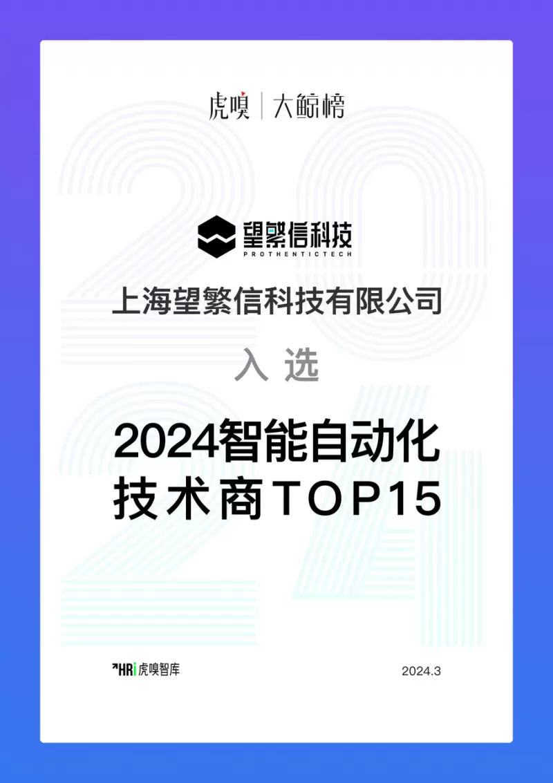 领跑数字化转型:望繁信科技荣登「2024智能自动化技术商Top 15」榜单