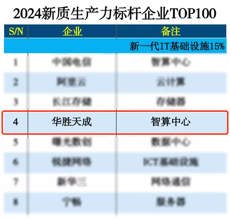 华胜天成荣登“2024新质生产力标杆企业百强”榜单