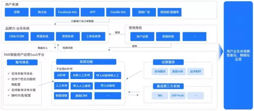九四智能用户运营SaaS平台可接入企业方业务系统,灵活支持一方、二方、客服业务方系统的调度使用,帮助金融机构实现分层用户、自动打标、迭代用户画像,高效、合规地拓展业务。