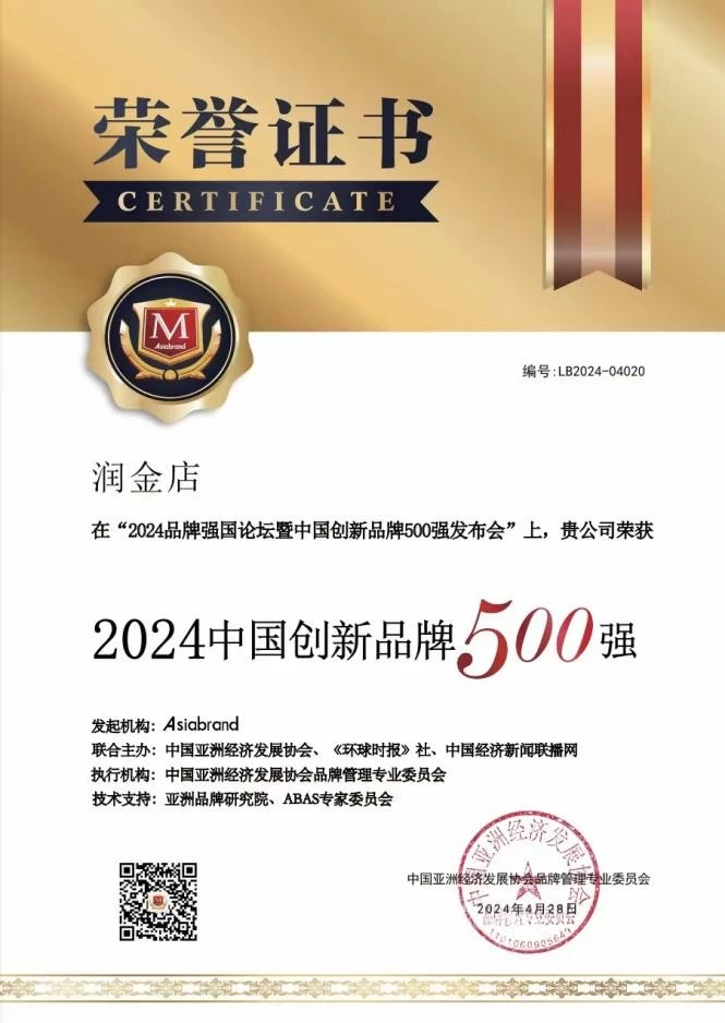 - 中国创新品牌500强,润金店打破边界、推动珠宝设计创新