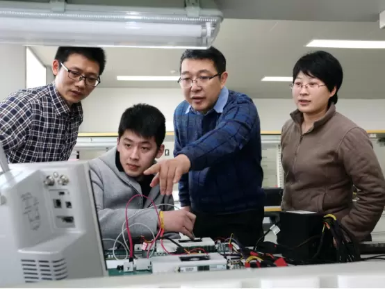 窦强(右二)与科研人员攻关飞腾CPU关键技术