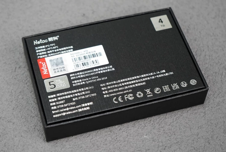 产品外包装的背面,5年质保+4TB的字样,尤为显眼。