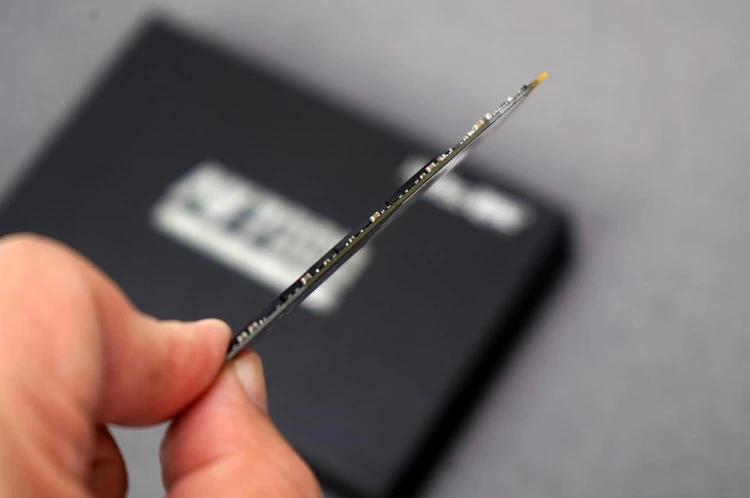 正面可以看到,黑色PCB板上布置了一颗主控芯片,四颗闪存芯片。NV7000-t采用无缓方案,通过搭载HMB技术及SLC Cache缓存技术,来提升硬盘的I/O读写性能。