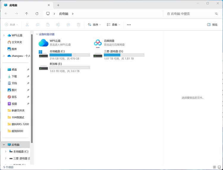 我们在不分区的情况下,可以看到NV7000-t 4TB可用空间为3.63TB,换算大约可用空间为3726GB。单块SSD这么大容量,已经比肩当年大容量的机械硬盘。以100GB一部3A游戏大作占用来算,NV7000-t大约能装下37部之多。Steam账号再多的游戏,也有地方安家啦。