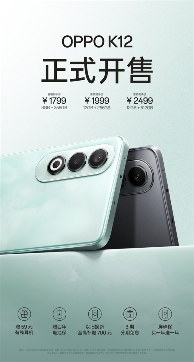 1799元起!OPPO K12正式开售,引领百瓦闪充超长续航双普及