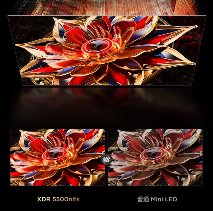 首先采用“Mini LED典藏级影像的最强核心”的六晶方芯II,带来3.5%亮度提升、40.2%能效提升,让画面细节更丰富。