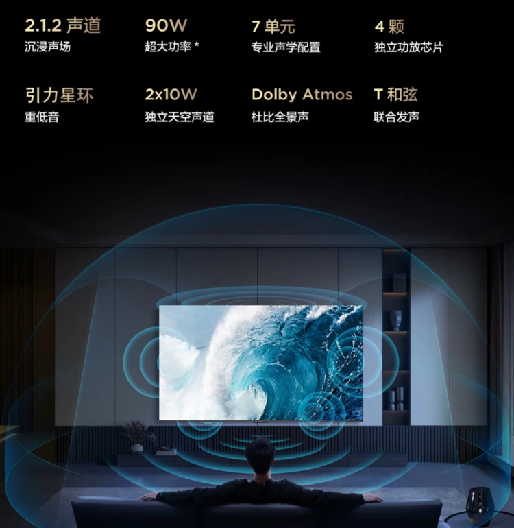 超旗舰不止是画面,连音效配置也贯彻到位。TCL Q10K Pro搭载了2.1.2 声道Hi-Fi级专业音响,拥有7单元90W的超大功率,电视传来的声音高保真且还有360°立体环绕,让你全方位沉浸在音乐世界里。
