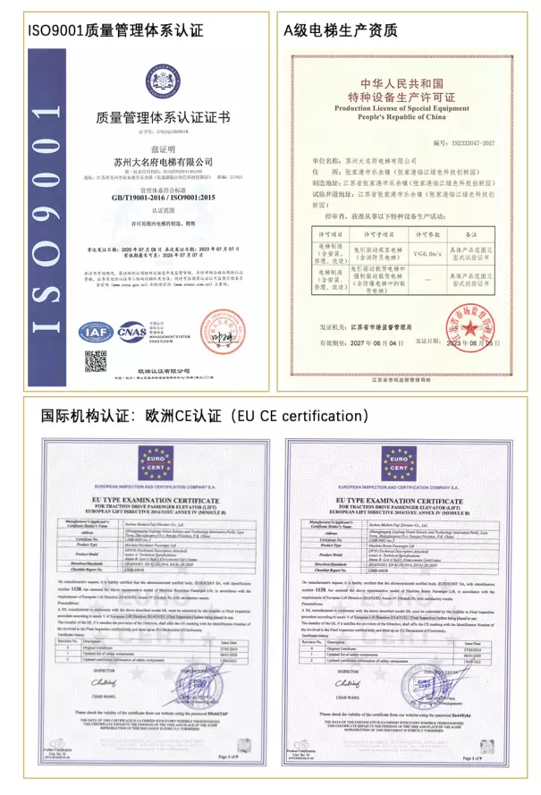 大名府家用电梯成立于2009年,在家用电梯领域钻研深耕15年。公司集电梯研发、生产、销售、安装为一体,拥有国家A级电梯生产资质和独立的电梯测试试验塔。