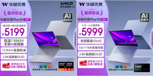 搭载锐龙7 8845H AI处理器 华硕无畏Pro15 2024更轻薄更高能
