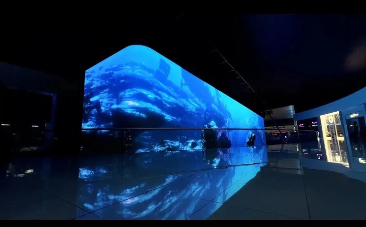 位于Dubai Mall的水族馆是世界最大的水箱之一。2024年1月,视爵光旭为水族馆打造的巨幕观赏墙正式投入使用,整个LED显示屏采用的是领秀系列3.9mm,宽度横跨70米,高达14米,面积超过980㎡,成为迪拜最大的室内LED显示屏装置。