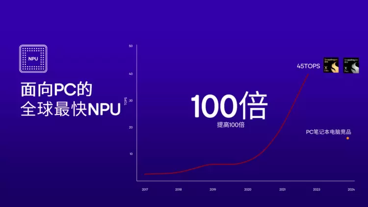 就拿刚刚推出的骁龙 X Plus 来说,依托高达 45TOPS 算力的强大 NPU,移动 PC 可以用远低于竞品的功耗以及数倍的速度运行 AI 功能。