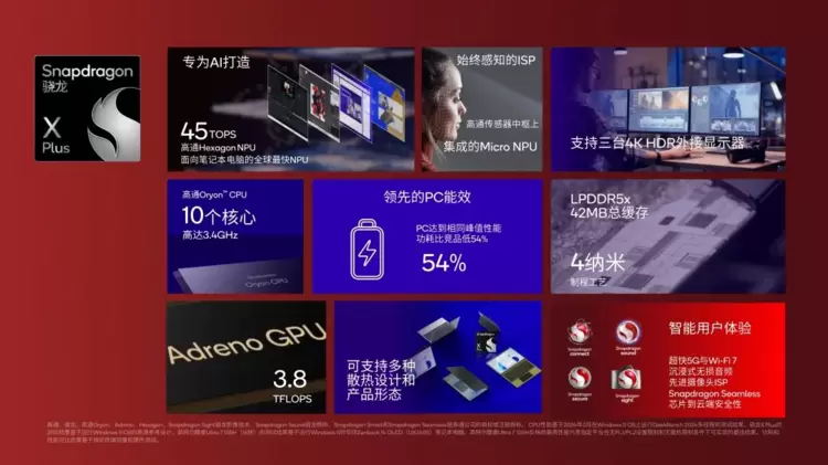 从出色的性能到持久的续航,从强大的 AI 算力到始终在线的 5G 连接,可以说,骁龙 X Plus 给 PC 带来的,是 AI 时代全方位的顶级体验。