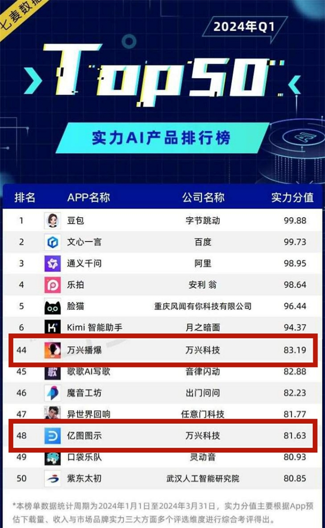 AI赋能创作升级 万兴科技旗下万兴播爆亿图图示入围实力AI产品Top50