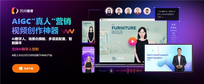 此次入围榜单的万兴播爆是万兴科技基于20年视频创意和出海实战经验沉淀,结合AIGC、数字虚拟人和短视频制作多元技术而打造的一款AIGC“真人”营销视频创作神器,用户可定制专属数字人形象及音色,此外还可以使用产品提供的现成数字人形象进行创作。