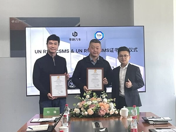 TÜV南德授予零跑科技UN R155 CSMS及UN R156 SUMS证书