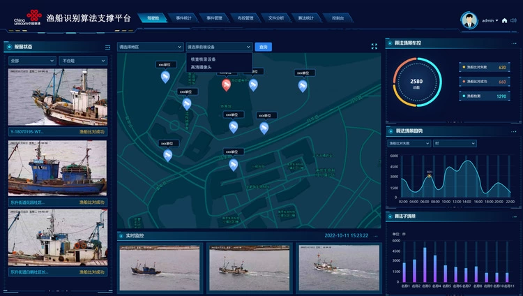 在渔船识别方面,现场执法终端/高清摄像头采集船舶图像,通过5G网络回传至中心服务器与库中船舶进行对比识别,判断渔船是否为在渔政部门登记过的渔船,是否套牌其他合法渔船的船号,以及是否为“三无”船只。