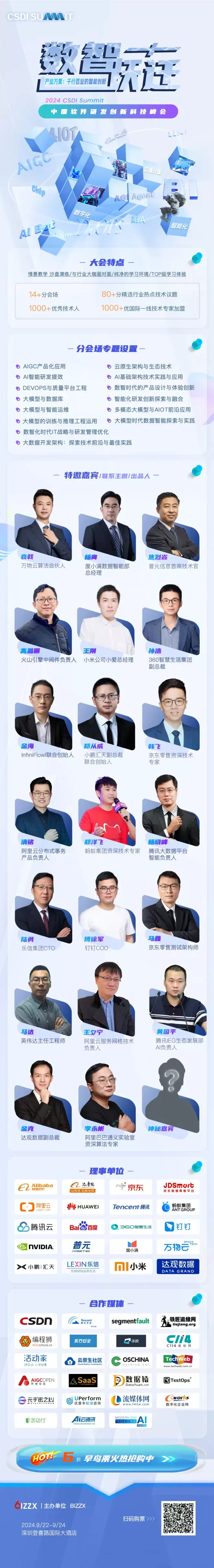 2024CSDI峰会将以数智+跃迁为主旨,于9月20-22日深圳召开,携国内众多顶尖优秀企业,面向技术管理者和一线技术带头人,抽丝剥茧:以业务与新兴技术应用为导向的:AIGC行业化、智能化开发、数据智能、大模型规模化应用、架构生态、研发效能、组织战略等先进数字技术进行全面解析,帮组企业构建和借鉴适合自身的技术实践。