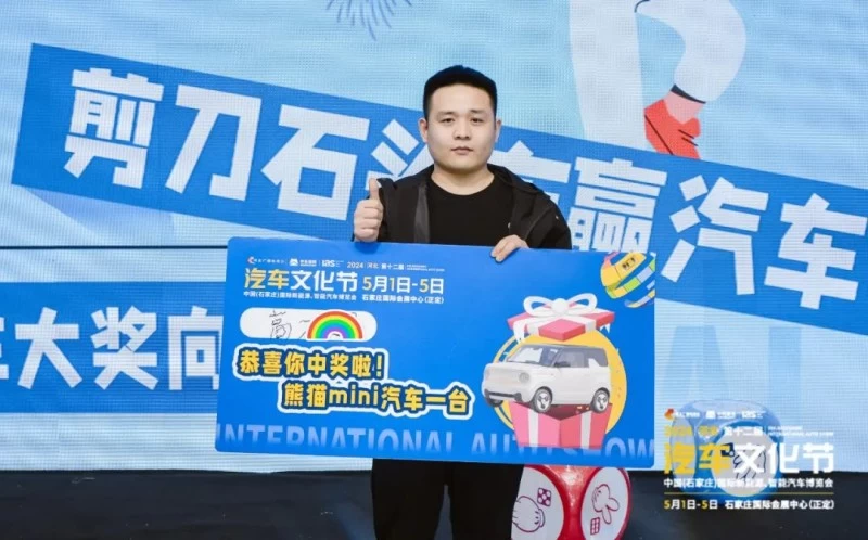 2024河北汽车文化节开幕第四天啦!剪刀石头布赢汽车活动现已结束,恭喜市民高先生赢得了真汽车大奖:吉利熊猫mini一台