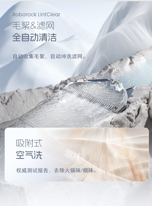 不仅如此,石头 H1 Air 还具备毛屑&滤网全自动清洁功能,无需处理衣物上的毛屑就能直接投入清洗, 洗完洁净如新;高温筒自洁、 巴氏除菌功能,能够杀死大肠杆菌、粉尘螨等,有效清除宠物毛发、毛屑以 及残留洗涤剂,在智能无忧的洗烘表现的基础上,给用户带来省心、健康的生活体验。