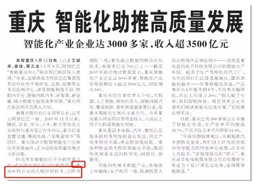 而这份力量同样也受到了中国权威媒体的关注。8月13日,《人民日报》发表文章,重庆智能化助推高质量发展(在习近平新时代中国特色社会主义思想指引下——新时代新作为新篇章),文中提及云从科技正跻身世界一流。