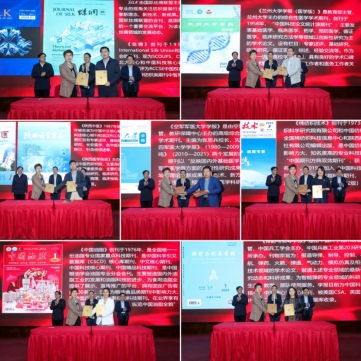 “丝路期刊集群”首批加盟期刊共41种,其中“西交刊群”32种期刊整体入驻,与会嘉宾为各入驻期刊代表现场颁发入驻证书;SILK、《丝绸》《兰州大学学报(医学版)》《陕西中医》《陕西医学杂志》《空军军医大学学报》《棉纺织技术》《中国油脂》《弹箭与制导学报》等9种由其他高校、科研院所主办的期刊首批加盟,与西安交通大学期刊中心签订加盟意向书。